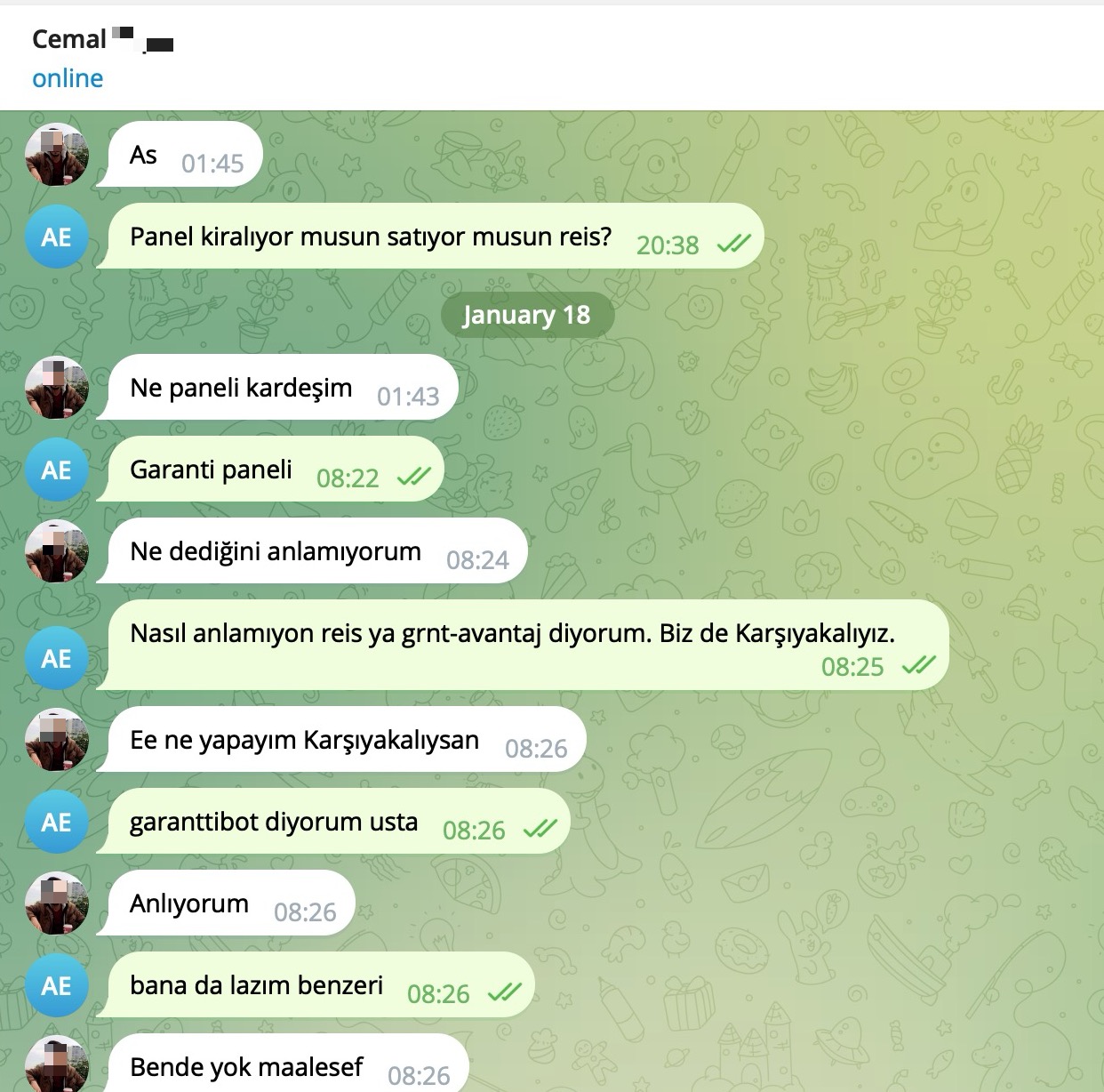 Excerpt from the Telegram conversation (translated from Turkish):