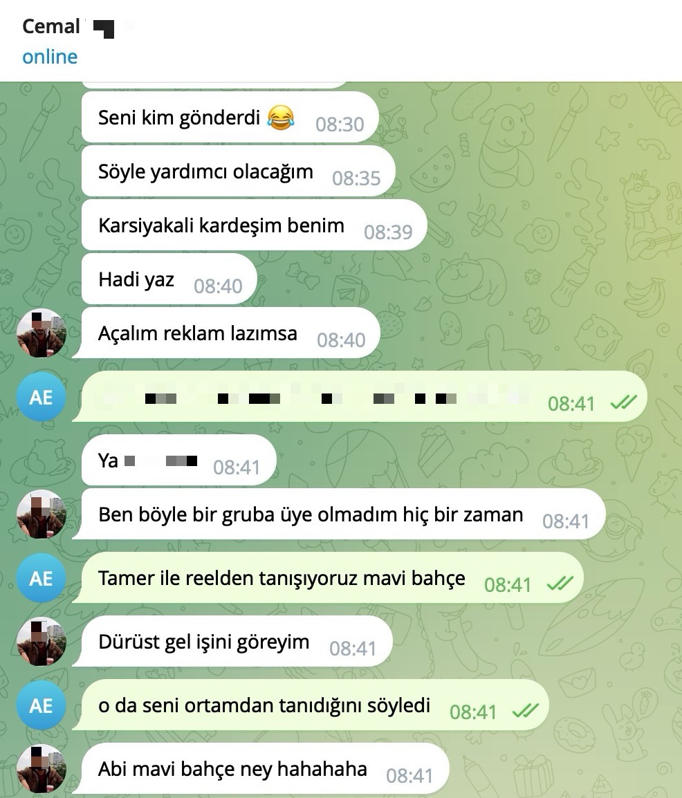Through the token, I reached Cemal’s Telegram account and encountered his surname information and a possible profile photo. My first reaction was to think that what I was seeing must be fake. Because if I could access this information, law enforcement certainly could — and Cemal would eventually get caught.